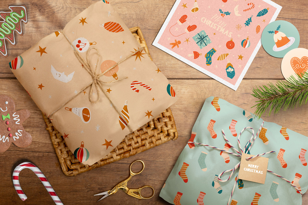 The Merry Christmas Collection includes over 150 digital illustrations, patterns, pre-made greeting cards and wall art pieces - perfect for your holiday projects!